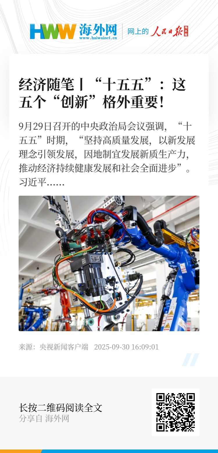 9月29日召开的中央政治局会议强调,“十五五”时期,“坚持高质量发展,以新发展理念引领发展,因地制宜发展新质生产力,推动经济持续健康发展和社会全面进步”。
