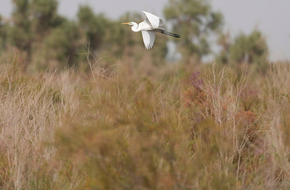 这是9月20日在新疆巴音郭楞蒙古自治州尉犁县喀尔曲尕乡附近的塔里木河流域湿地拍摄的白鹭。