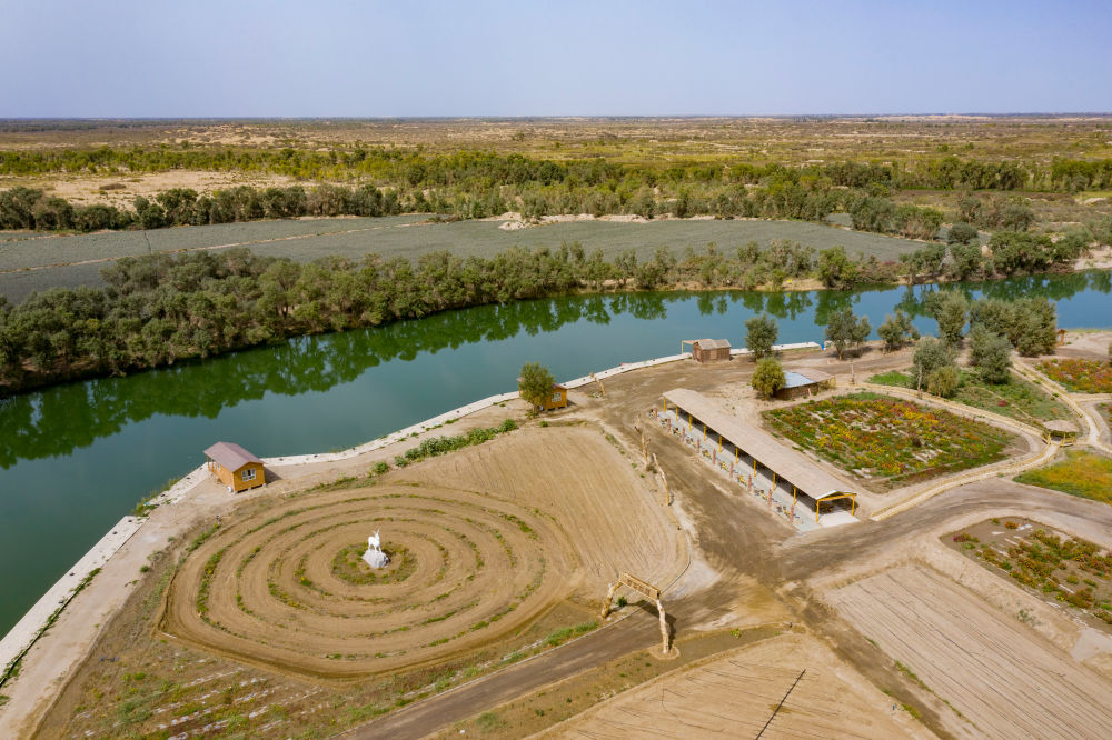 这是9月20日在新疆巴音郭楞蒙古自治州尉犁县喀尔曲尕乡拍摄的罗布庄园度假区(无人机照片)。