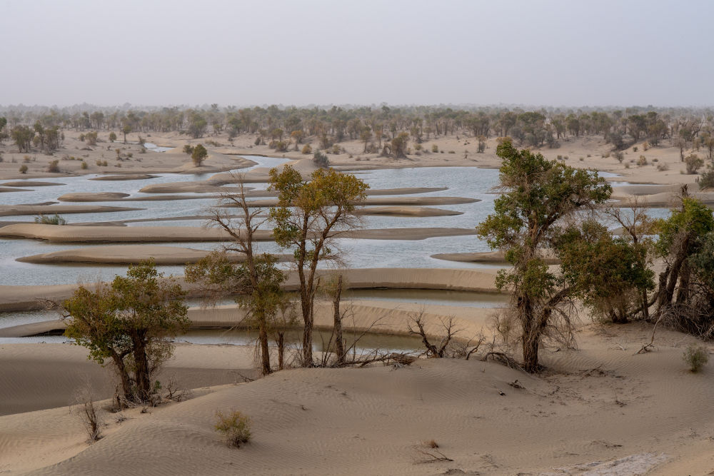 塔里木河沿塔克拉玛干沙漠北缘蜿蜒