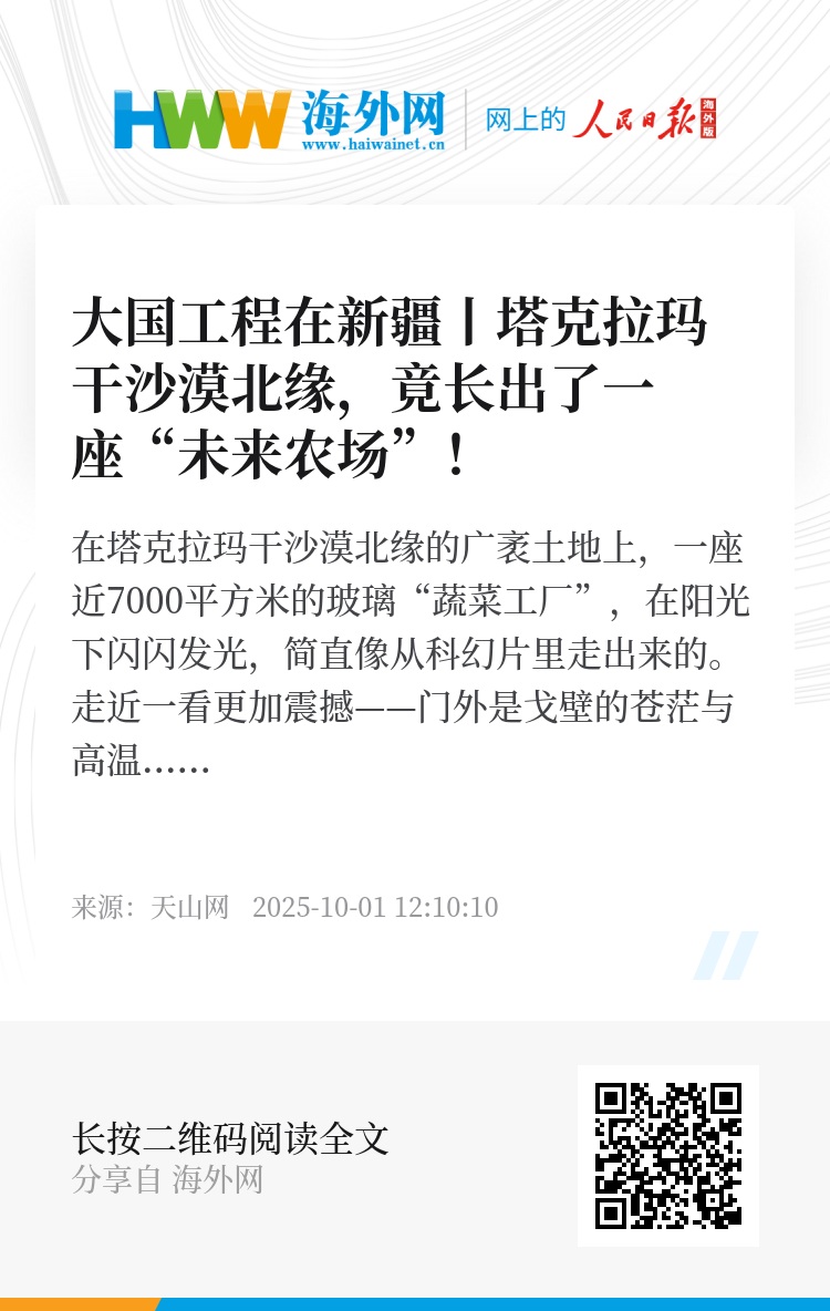 在塔克拉玛干沙漠北缘的广袤土地上,一座近7000平方米的玻璃“蔬菜工厂”,在阳光下闪闪发光,简直像从科幻片里走出来的。走近一看更加震撼——门外是戈壁的苍茫与高温,门内是适宜的温度、均匀的LED光源下,一排排立体栽培架上,生菜、菠菜青翠欲滴,它们的根系全都泡在营养液里,靠智能系统精准喂养!