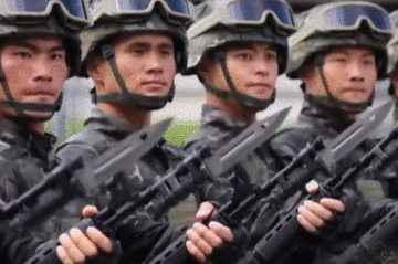 武警部队方队在阅兵集训点一直以严厉刚硬的训练作风著称,劈腿带风、落地砸坑,钢枪铁腿的武警部队方队为受阅动作定义了硬核标准。