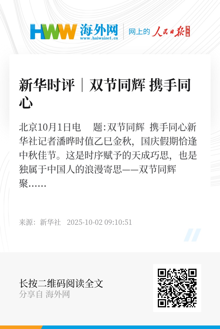 山河焕新颜,家国共此时。双节承载着家国相依的深厚逻辑,蕴含着九州同梦的美好愿景。站在“十四五”规划收官与“十五五”新征程开启的历史交汇点,人人争做弄潮儿,共同汇聚起推动国家前行的磅礴力量。