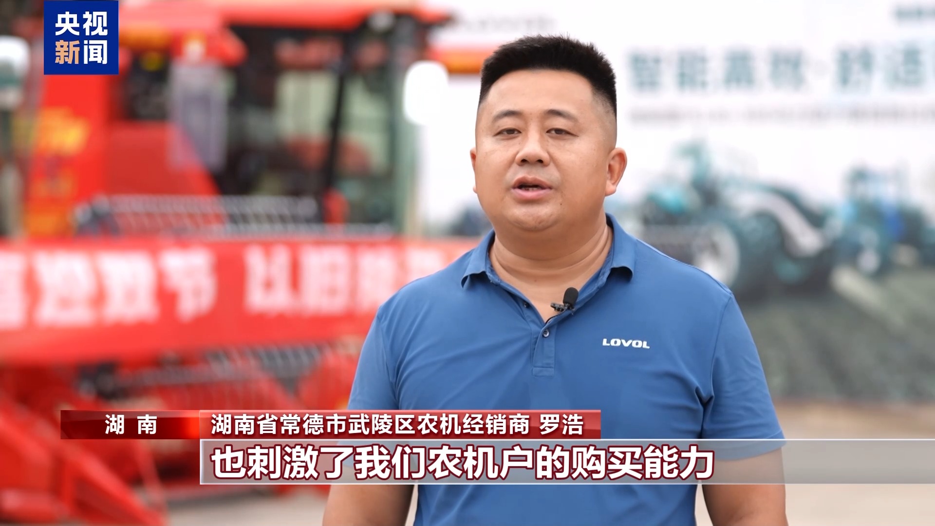 湖南省常德市武陵区农机经销商 罗浩:以旧换新政策有效地促进了我们农机的流通,也刺激了农机户的购买能力。相比于往年,销售提升了30%。