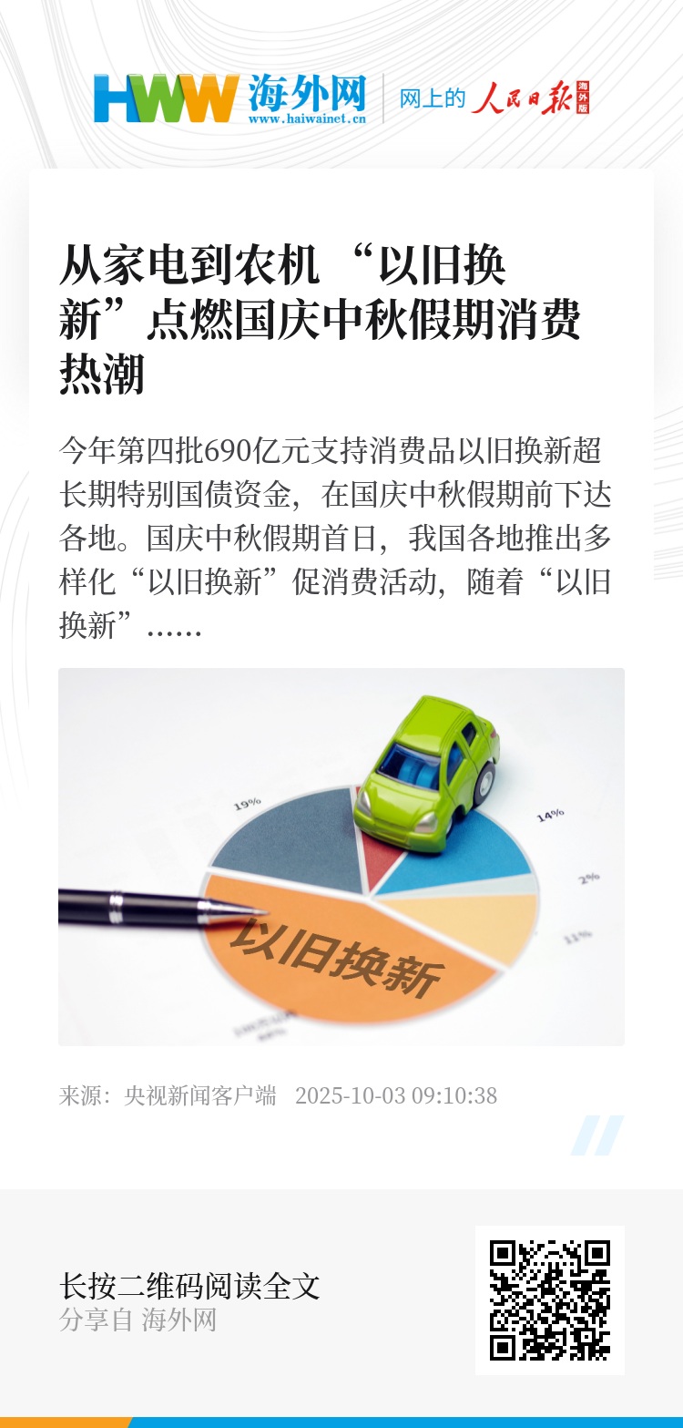 “以旧换新”点燃国庆中秋假期消费热潮
