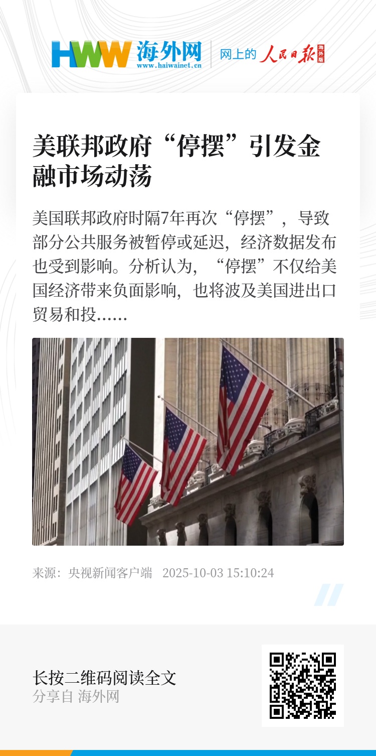 美国联邦政府时隔7年再次“停摆”,导致部分公共服务被暂停或延迟,经济数据发布也受到影响。分析认为,“停摆”不仅给美国经济带来负面影响,也将波及美国进出口贸易和投资等领域,动摇企业对美国市场的信心。