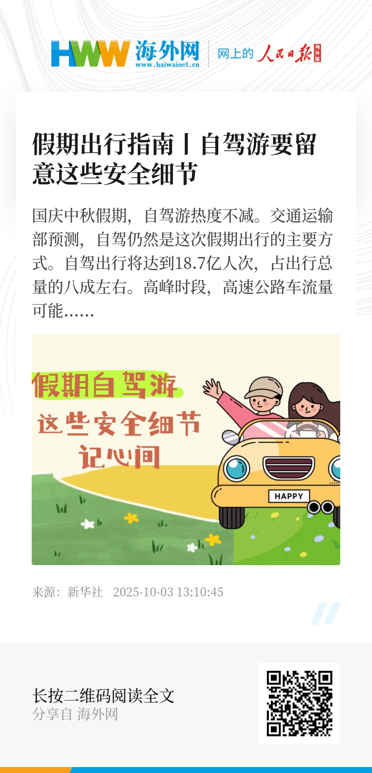国庆中秋假期,自驾游热度不减。交通运输部预测,自驾仍然是这次假期出行的主要方式。自驾出行将达到18.7亿人次,占出行总量的八成左右。高峰时段,高速公路车流量可能会突破日均7000万辆,其中新能源车有可能会达到1400万辆。