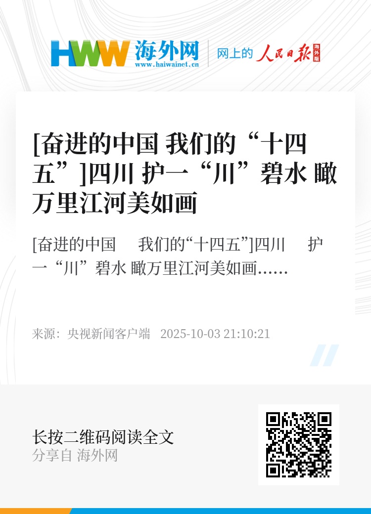 [奋进的中国 我们的“十四五”]四川 护一“川”碧水 瞰万里江河美如画