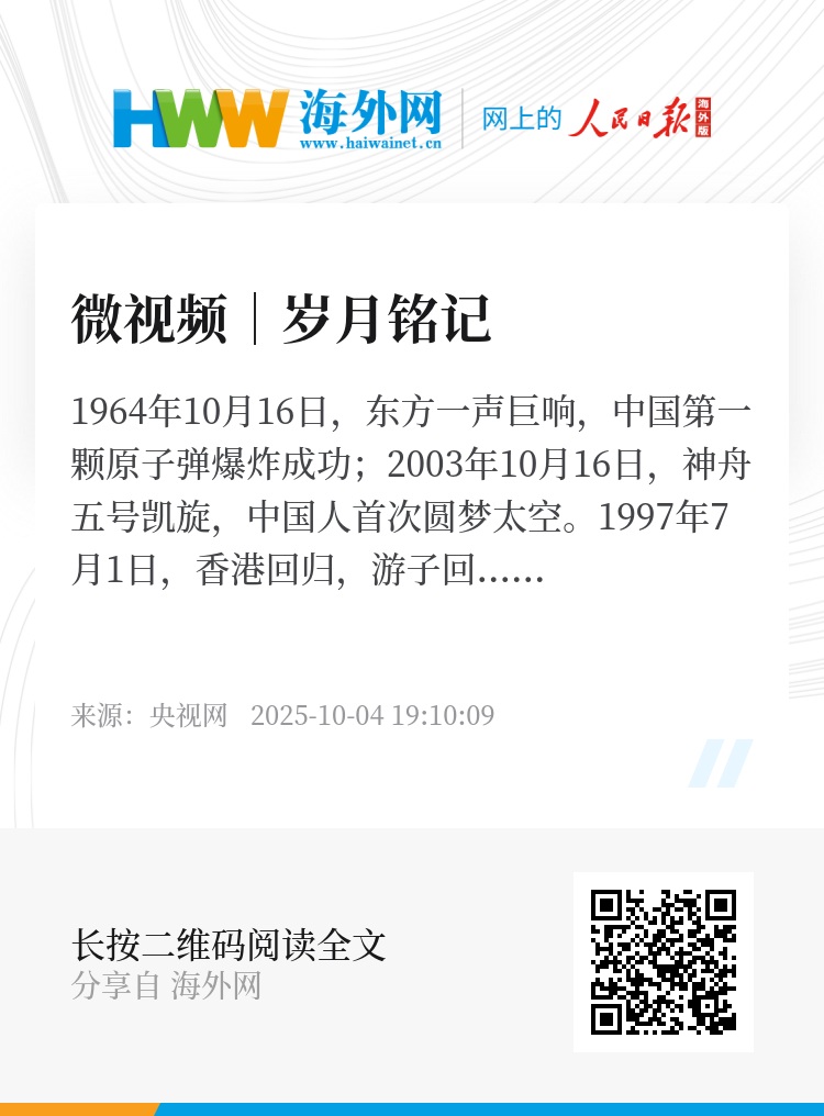 1964年10月16日,东方一声巨响,中国第一颗原子弹爆炸成功;2003年10月16日,神舟五号凯旋,中国人首次圆梦太空。
