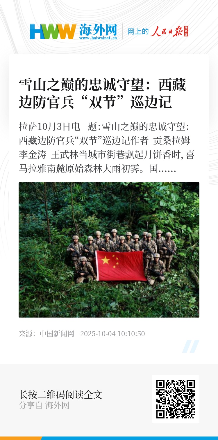 中新网拉萨10月3日电 题:雪山之巅的忠诚守望:西藏边防官兵“双节”巡边记