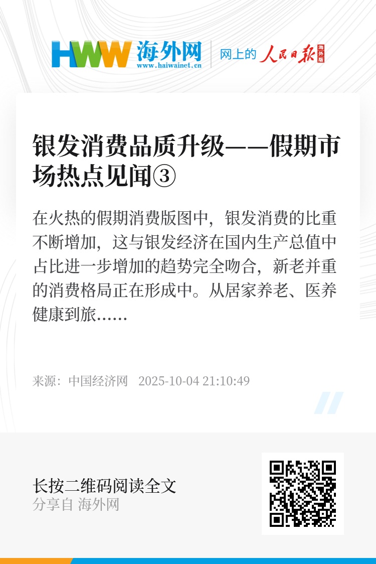 在火热的假期消费版图中,银发消费的比重不断增加,这与银发经济在国内生产总值中占比进一步增加的趋势完全吻合,新老并重的消费格局正在形成中。从居家养老、医养健康到旅游社交、适老化改造,老年人正在用生活足迹勾勒出消费市场的最新动向。