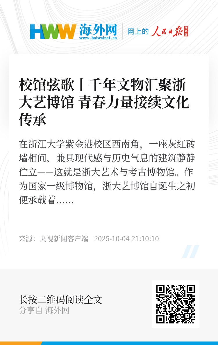 从传统修复到AI赋能,从策展创新到实物教学,浙大艺博馆正以青春的方式,让文物“活”在当下、传向未来。越来越多的年轻人,在这里找到文化认同与使命。