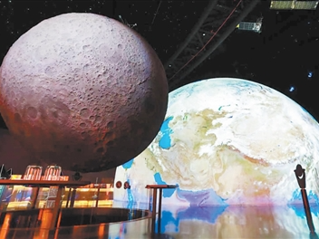 上海天文馆“家园”展区的地球和月球模型。高千峻摄(人民视觉)