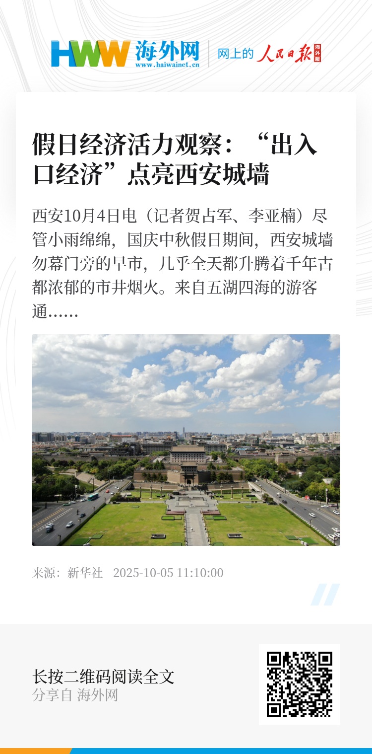 “出入口经济”的红利,不仅惠及游客,更实实在在落在了商家身上。数据印证着这份活力:西安城墙出入口全面开放后,景区客流大幅增长,仅10月2日就达4.85万人次;今年5月1日以来,新开的6处登城门点已接待游客15.72万人次,源源不断的人流为周边商圈注入新的动力。
