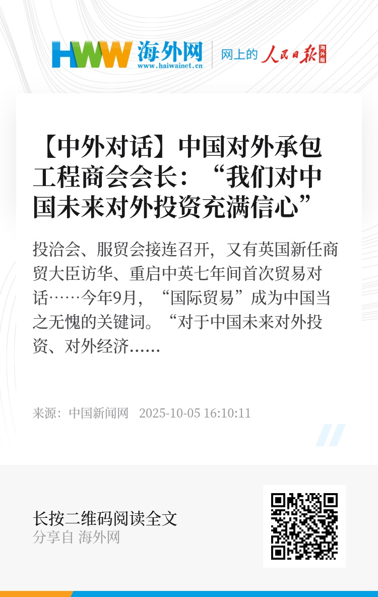 “对于中国未来对外投资、对外经济技术合作,我们是充满了信心,”近日,中国对外承包工程商会会长房秋晨接受中新网“中外对话”栏目采访时表示。