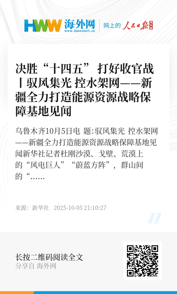 新华社乌鲁木齐10月5日电 题:驭风集光 控水架网——新疆全力打造能源资源战略保障基地见闻