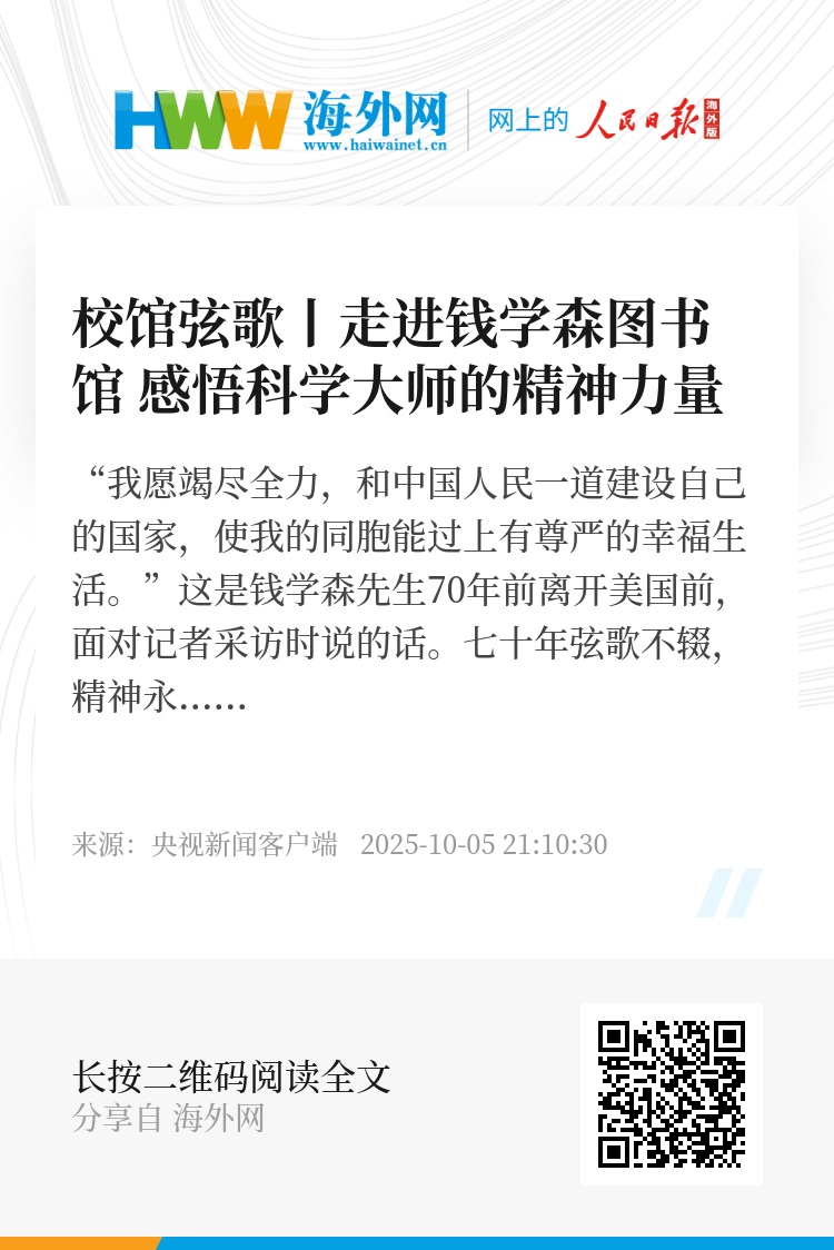 七十年弦歌不辍,精神永续,在上海交通大学的校园内,一座钱学森图书馆,成为一代代青年学子感悟科学家家国情怀、科学精神的重要殿堂。