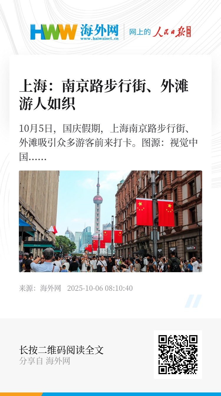32898916,.上海:南京路步行街、外滩游人如织,.2025-10-06 08:06:40,.204183,.卢思宇、姚凯红