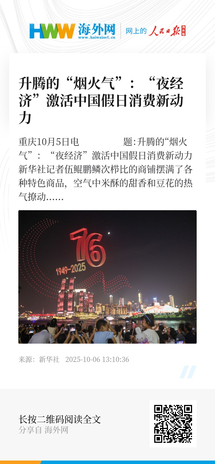 新华社重庆10月5日电 题:升腾的“烟火气”:“夜经济”激活中国假日消费新动力