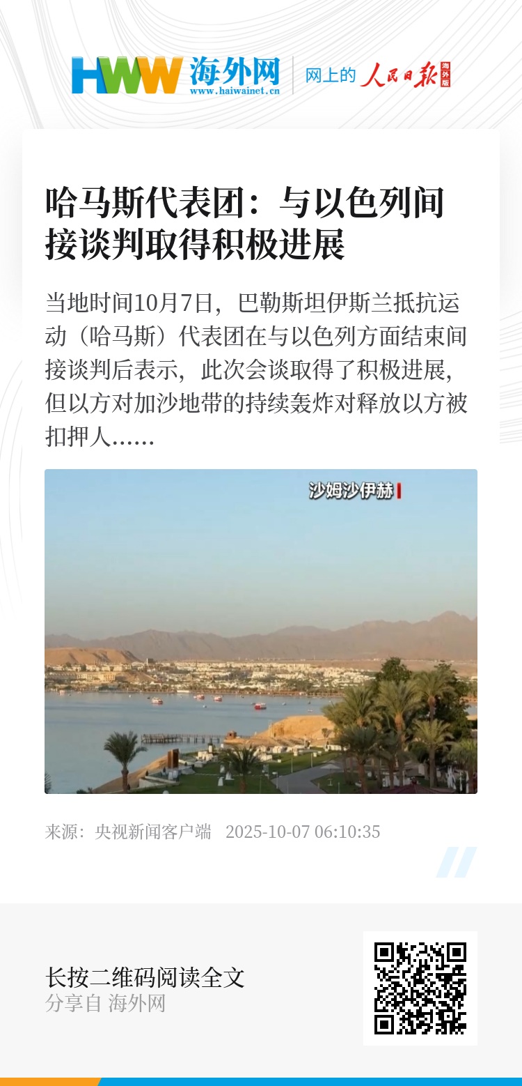 当地时间10月7日,巴勒斯坦伊斯兰抵抗运动(哈马斯)代表团在与以色列方面结束间接谈判后表示,此次会谈取得了积极进展,但以方对加沙地带的持续轰炸对释放以方被扣押人员“构成了挑战”。