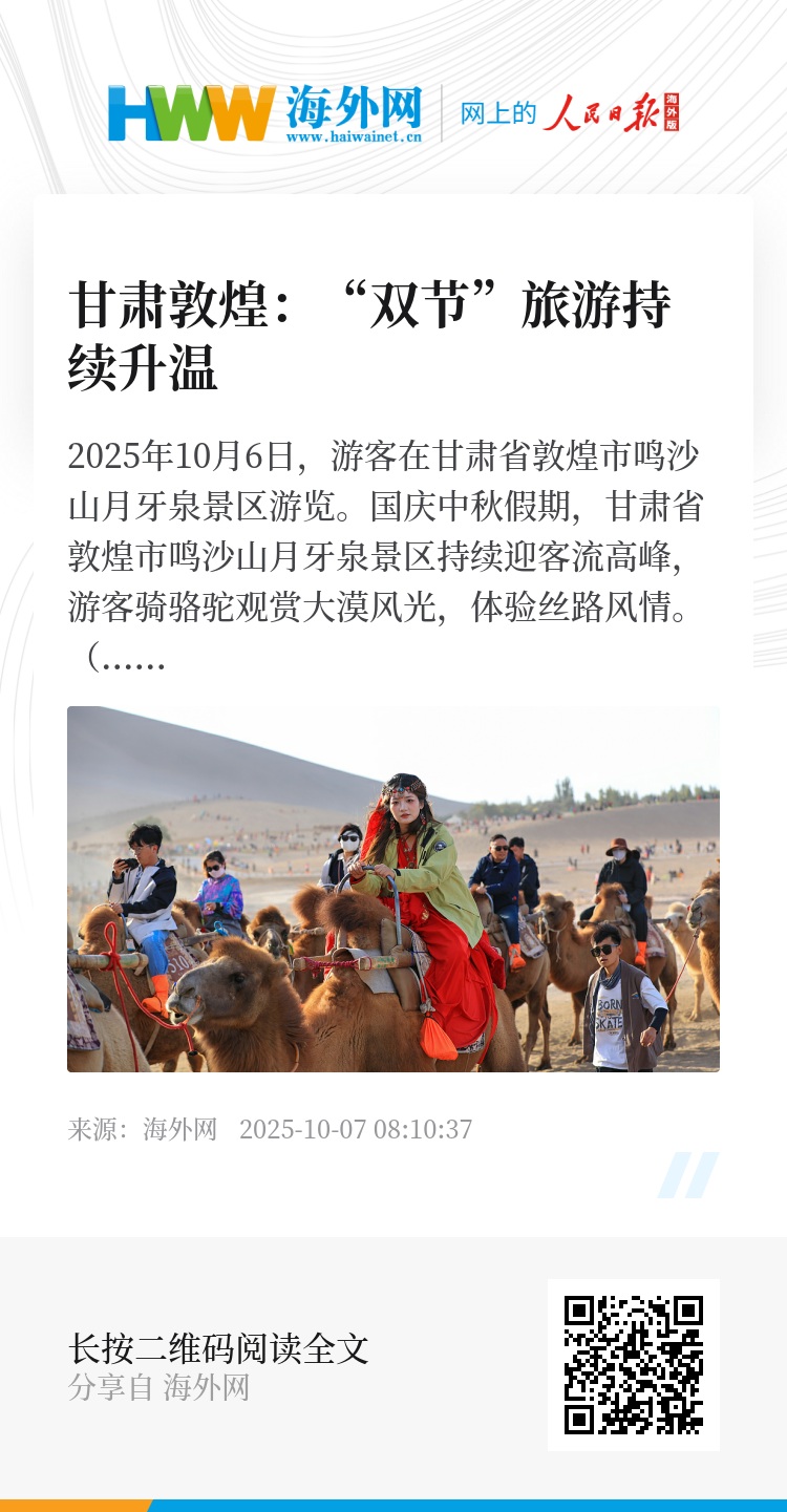32899103,.甘肃敦煌:“双节”旅游持续升温,.2025-10-07 08:52:37,.204183,.卢思宇、姚凯红