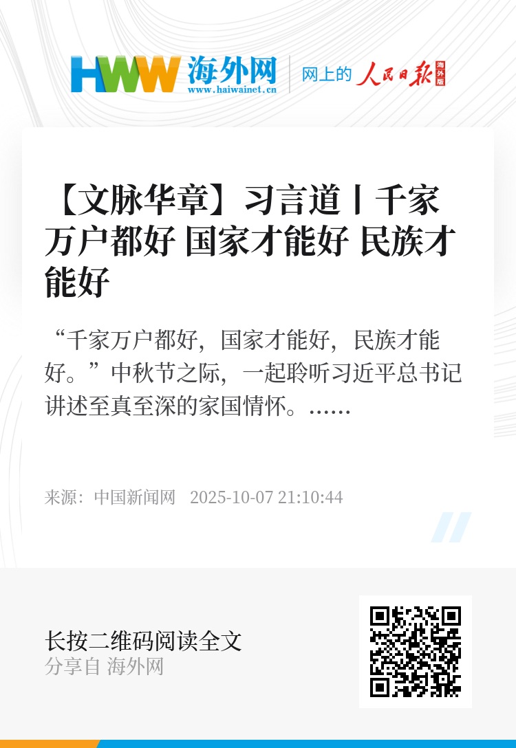 “千家万户都好,国家才能好,民族才能好。”中秋节之际,一起聆听习近平总书记讲述至真至深的家国情怀。