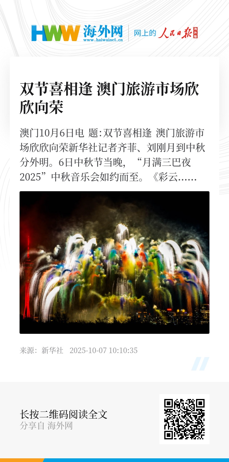 新华社澳门10月6日电 题:双节喜相逢 澳门旅游市场欣欣向荣