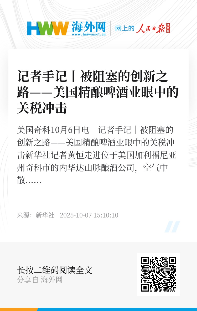 新华社美国奇科10月6日电 记者手记|被阻塞的创新之路——美国精酿啤酒业眼中的关税冲击
