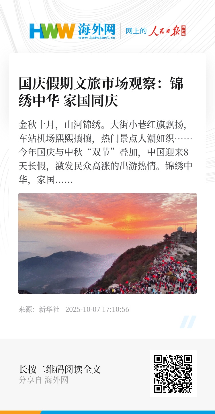 大街小巷红旗飘扬,车站机场熙熙攘攘,热门景点人潮如织……今年国庆与中秋“双节”叠加,中国迎来8天长假,激发民众高涨的出游热情。锦绣中华,家国同庆。
