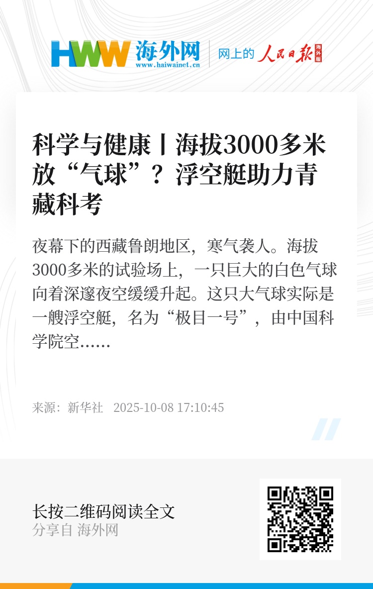 “要把‘极目一号’打造成更开放的空中试验平台,欢迎更多科学仪器来‘搭便车’,更好助力科学研究、服务国计民生。”张泰华说。