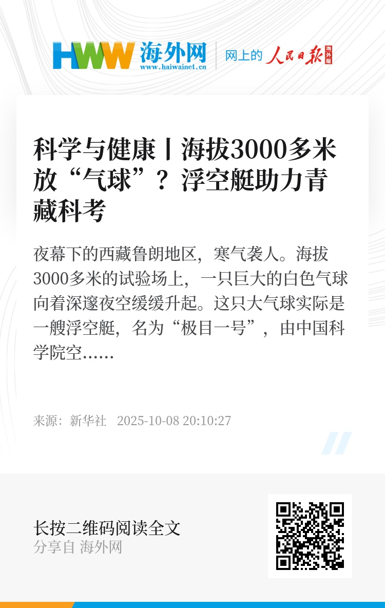 “要把‘极目一号’打造成更开放的空中试验平台,欢迎更多科学仪器来‘搭便车’,更好助力科学研究、服务国计民生。”张泰华说。