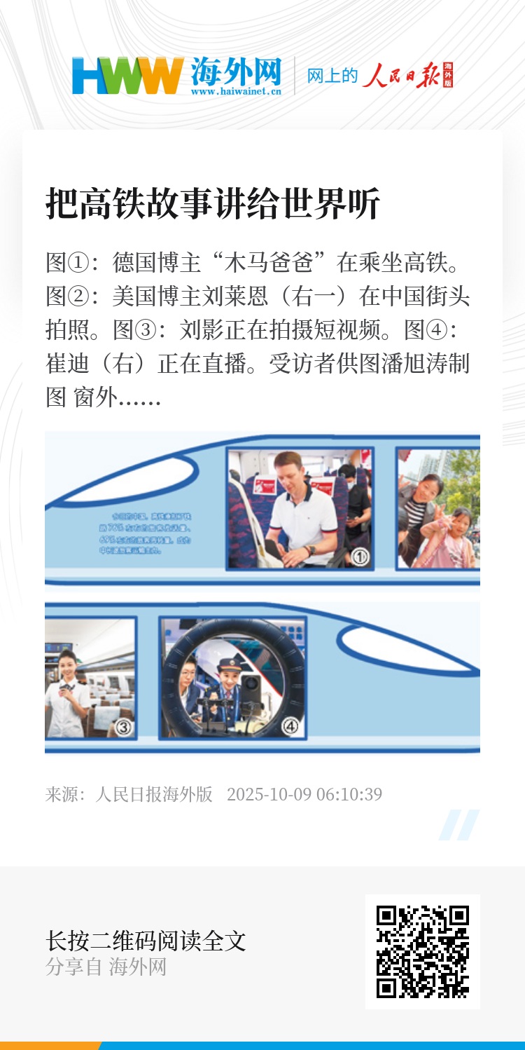中外网红博主以各自独特的风格,通过幽默风趣的短视频展现了中国高铁的速度、温度与力量。他们用镜头连接起千万乘客的心,传递了中国铁路发展的精神风貌,展示出中国高铁的独特魅力。(严 冰 夏雨梦 张琪贇)