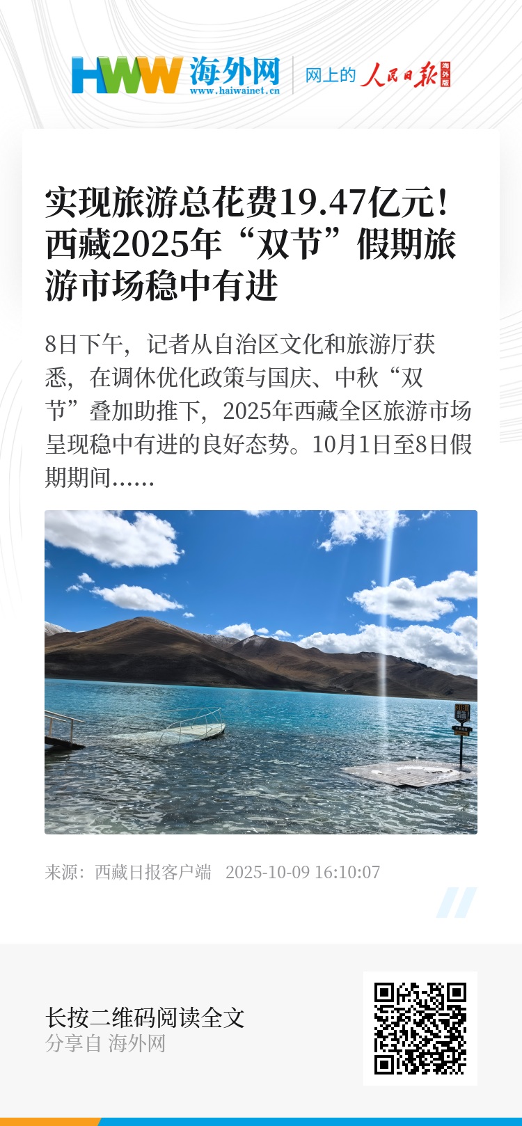 8日下午,记者从自治区文化和旅游厅获悉,在调休优化政策与国庆、中秋“双节”叠加助推下,2025年西藏全区旅游市场呈现稳中有进的良好态势。10月1日至8日假期期间,全区共接待国内外游客375.52万人次,实现旅游总花费19.47亿元。