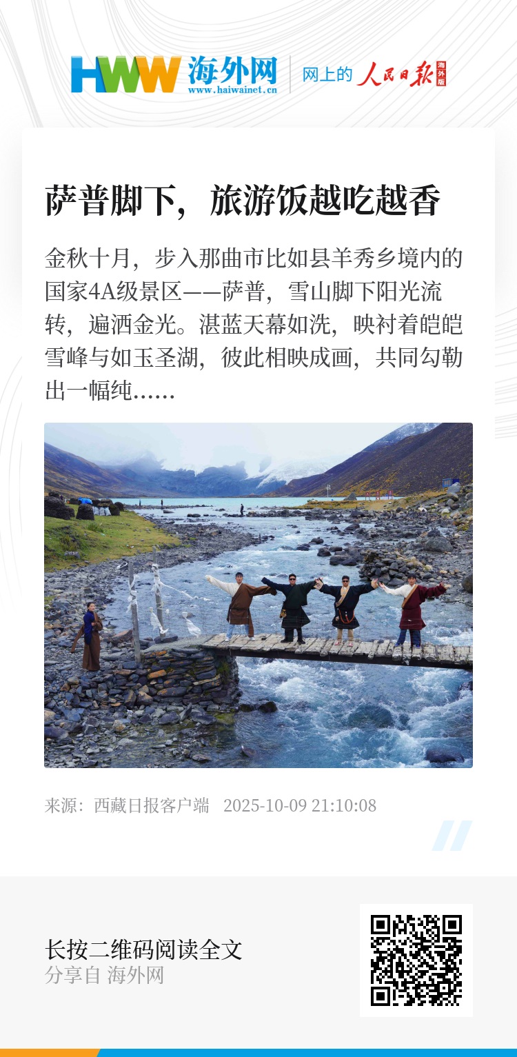 金秋十月,步入那曲市比如县羊秀乡境内的国家4A级景区——萨普,雪山脚下阳光流转,遍洒金光。湛蓝天幕如洗,映衬着皑皑雪峰与如玉圣湖,彼此相映成画,共同勾勒出一幅纯净而壮丽的高原画卷。