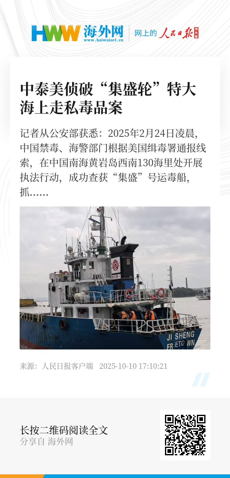 日前,中泰美“集盛轮”特大海上走私毒品案交流会在广东省广州市举行,中国公安部禁毒局、泰国皇家警察肃毒局、美国司法部缉毒署代表团参加会议。