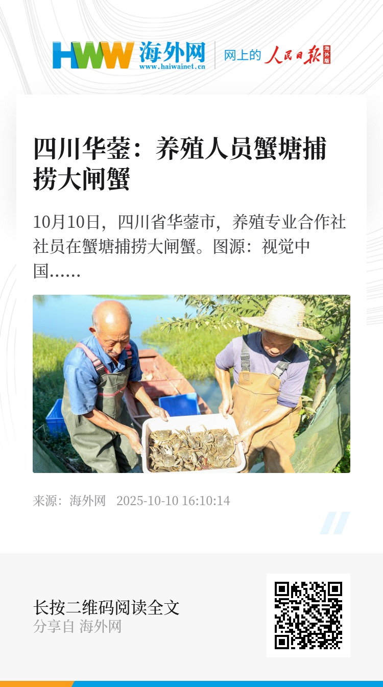32899845,.四川华蓥:养殖人员蟹塘捕捞大闸蟹,.2025-10-10 16:42:14,.204589,.黄之安、姚凯红