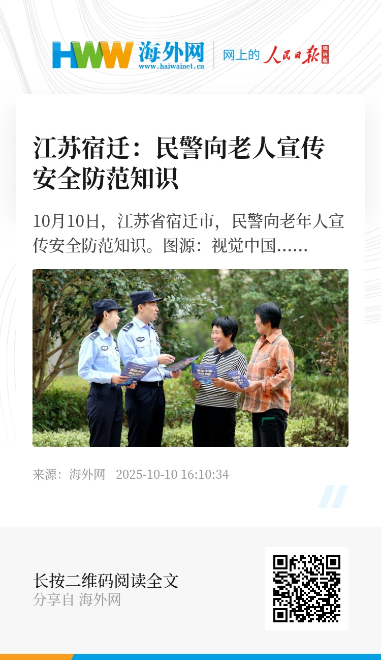 32899847,.江苏宿迁:民警向老人宣传安全防范知识,.2025-10-10 16:46:34,.204589,.黄之安、姚凯红