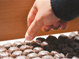 10月1日,在瑞士格吕耶尔地区布罗克的凯雅巧克力博物馆,参观者品尝巧克力。新华社记者 连 漪摄
