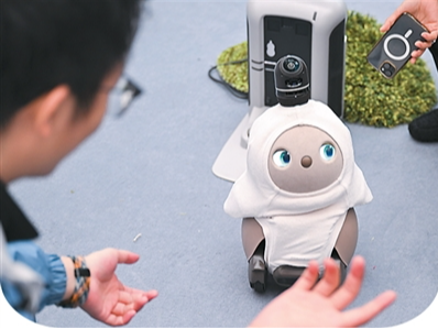 观众在2025全球开发者先锋大会现场与陪伴机器人互动。陈浩明摄(新华社发)