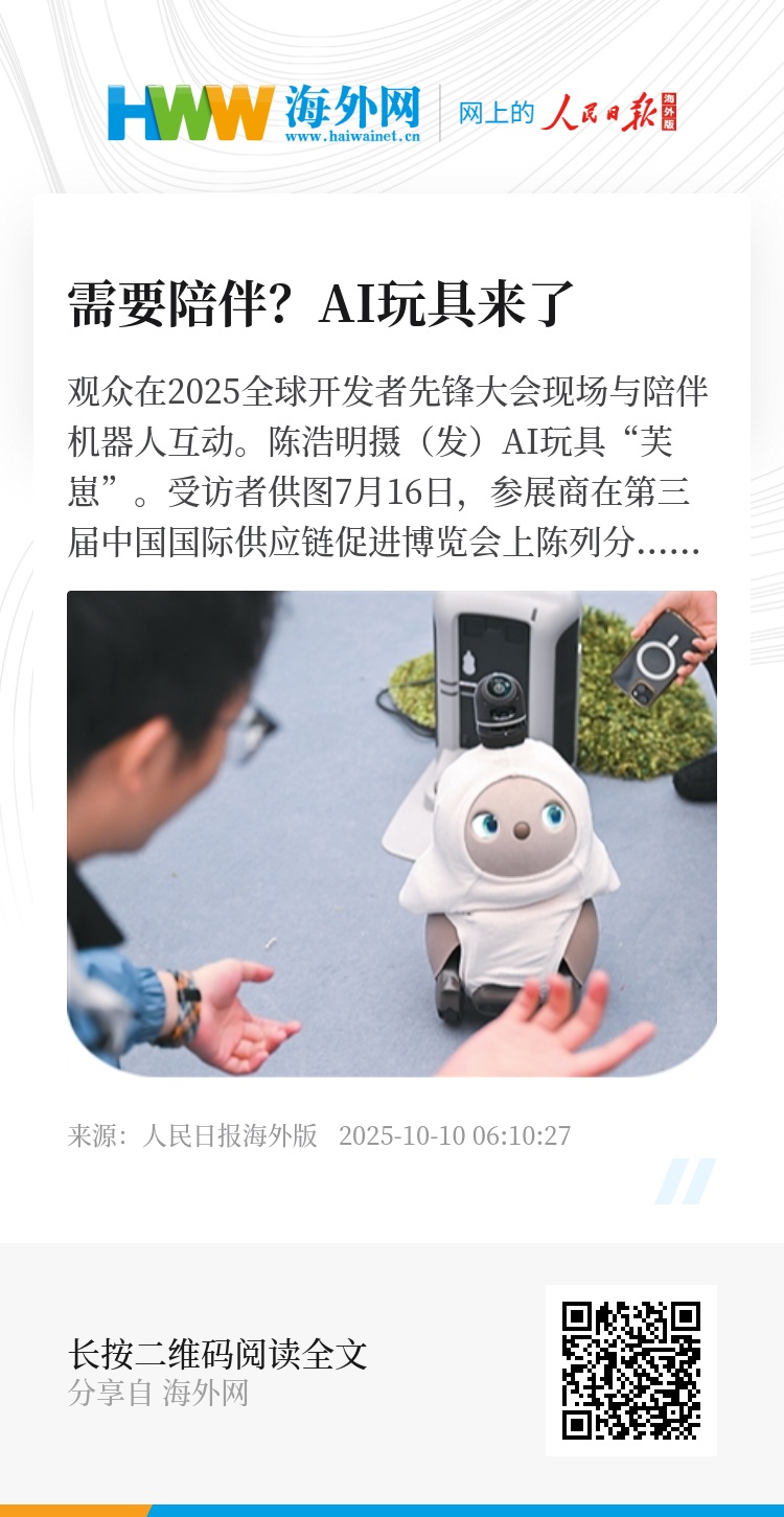 “传统玩具行业主要依靠产品销售盈利,而AI玩具则需要通过提供持续的、有价值的内容服务,增加了客户黏性和产品附加值。”钟文杰说。(李 贞 张琪贇)