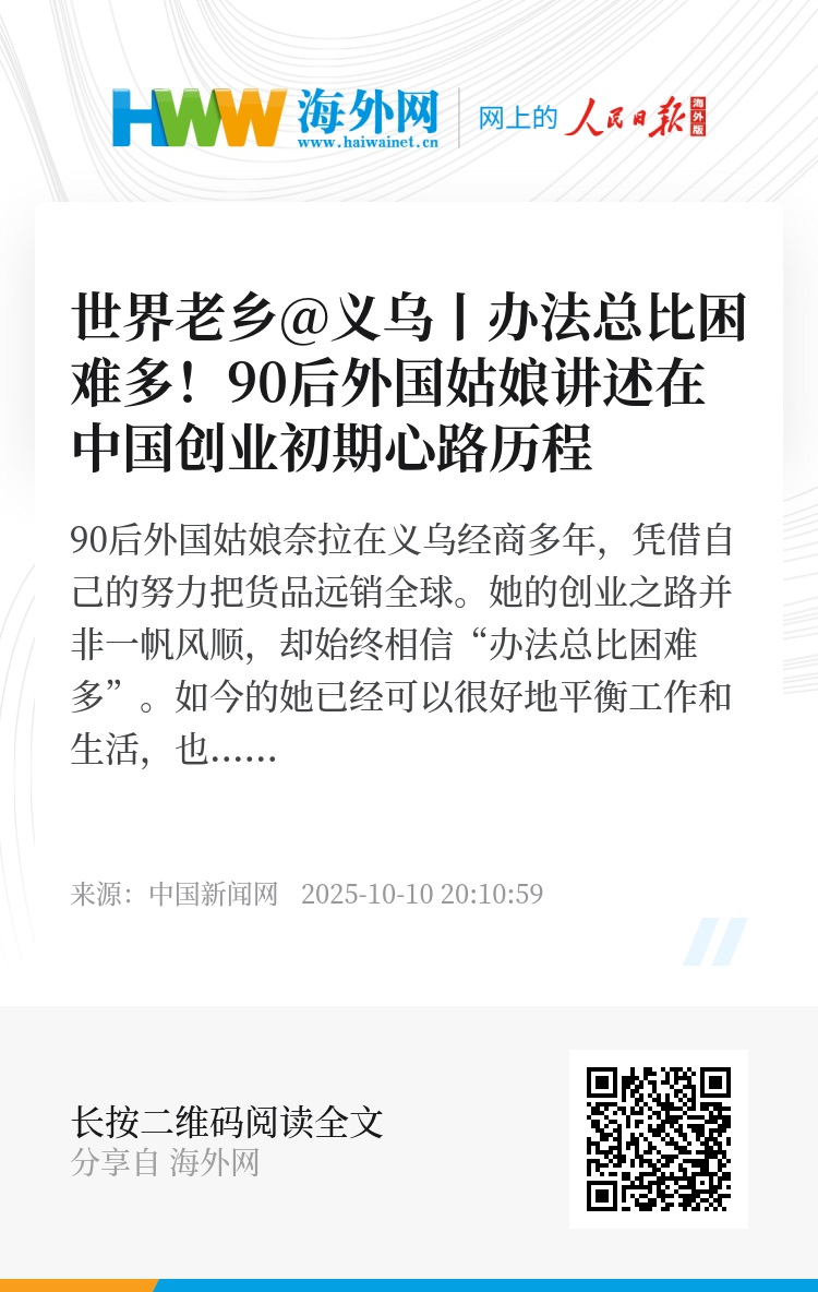 90后外国姑娘奈拉在义乌经商多年,凭借自己的努力把货品远销全球。她的创业之路并非一帆风顺,却始终相信“办法总比困难多”。如今的她已经可以很好地平衡工作和生活,也用自己的经历鼓励更多的年轻创业者。
