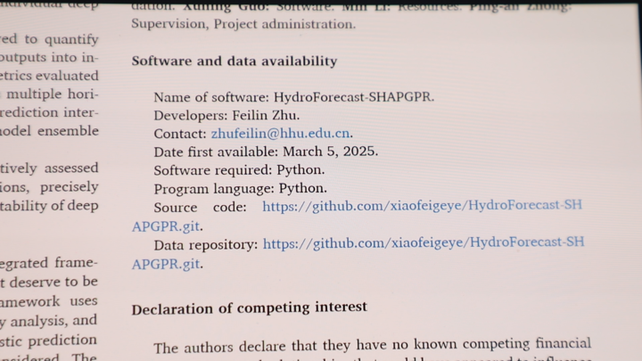 朱非林在学术研究中有一个特别的坚持——公开分享自己的代码。早在2017年,他就将防洪决策的模型代码公开,美国、印度及国内的学者纷纷与他联系,在他开发的模型基础上进行深化研究,推动了整个方向的发展。"水利行业是造福人民的事业,不应该有围墙。"朱非林的想法很简单,一项技术只有被更多人使用、检验和完善,才能发挥更大价值,更快推动整个行业进步。个人的工作如果能给其他研究者或工程单位带来启发和帮助,其意义就远超一篇论文本身。