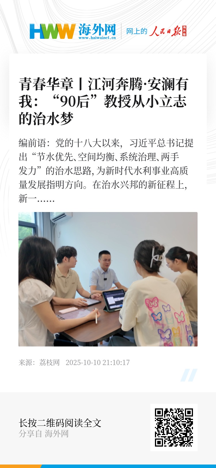 从童年的朴素愿望到如今的科研成果,朱非林用十余年时间践行着"将论文写在祖国大地上"的誓言。他的故事,正是新时代青年科技工作者将个人理想融入国家需要、用青春守护江河安澜的生动写照。