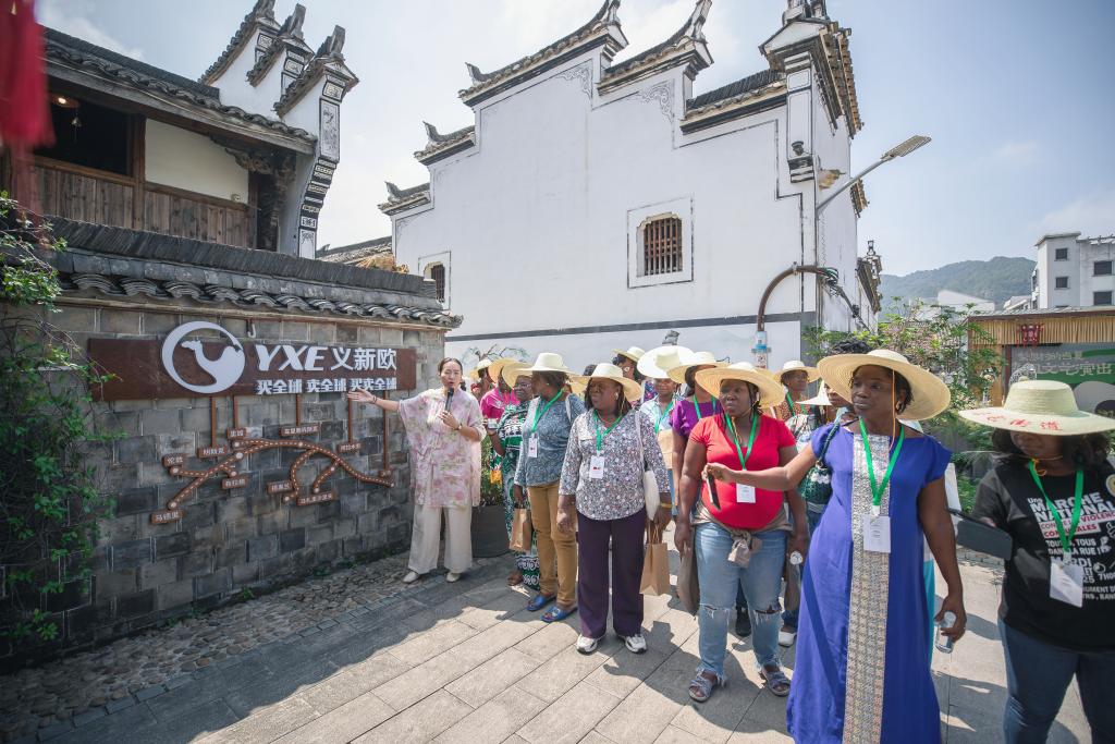 9月18日,参加能力建设研修班的中非共和国妇女官员,在浙江省义乌市李祖村调研。(受访者供图)