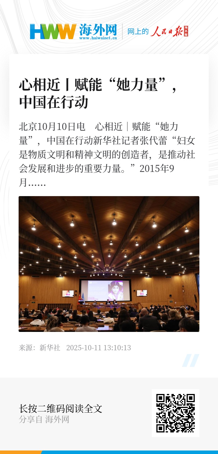 新华社北京10月10日电 心相近|赋能“她力量”,中国在行动