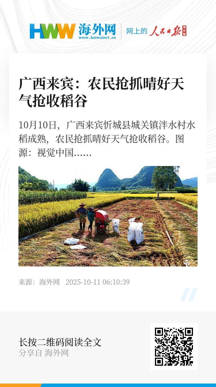 32899916,.广西来宾:农民抢抓晴好天气抢收稻谷,.2025-10-11 06:56:39,.204441,.张荣耀、卢思宇