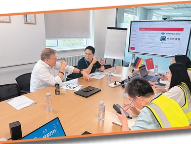 青岛自贸片区知识产权服务专员向企业德国总部相关负责人讲解知识产权保护方案。石 蕾摄