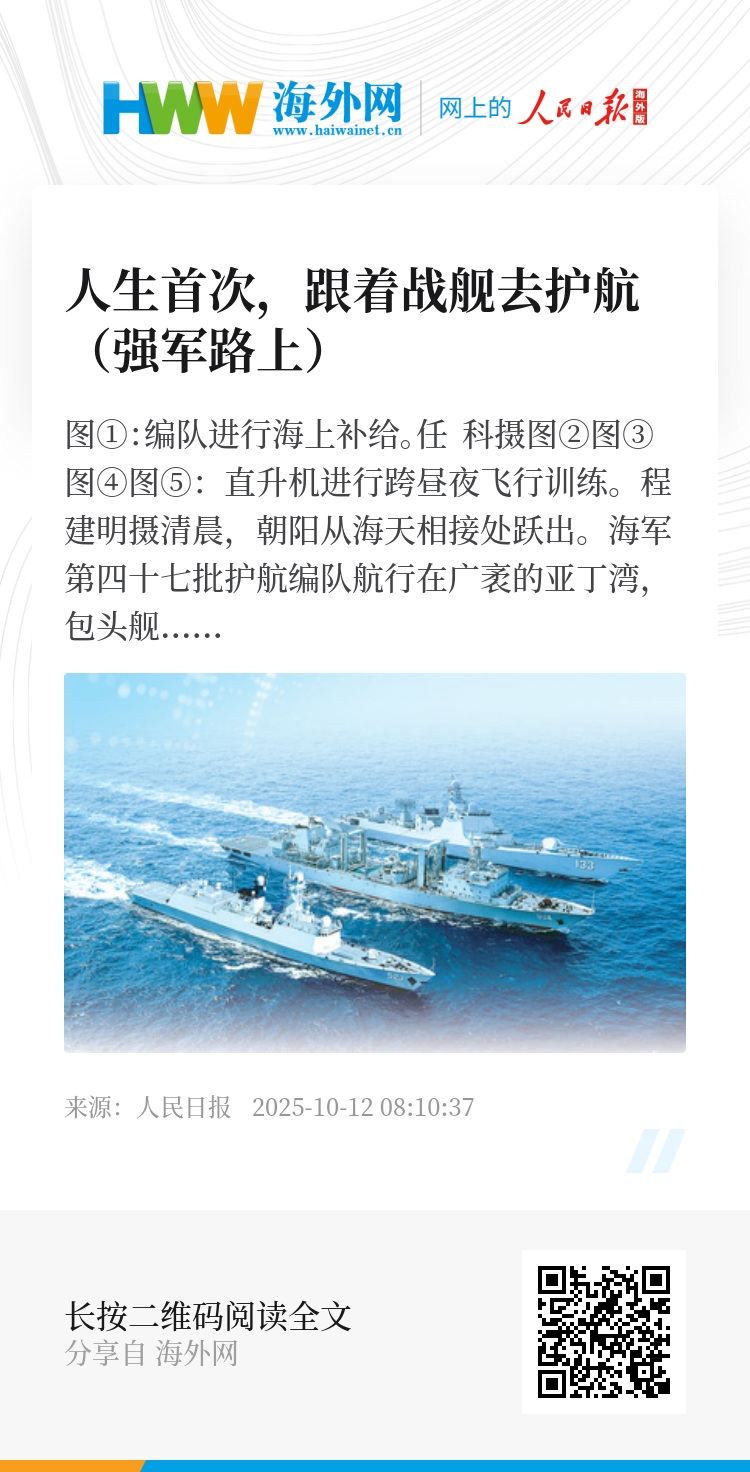 这是一支维护和平的中国力量。在这片海域,中国海军护航编队连续航行、昼夜往返,为中外船舶护航。