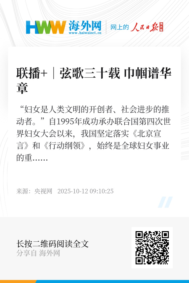 自1995年成功承办联合国第四次世界妇女大会以来,我国坚定落实《北京宣言》和《行动纲领》,始终是全球妇女事业的重要参与者、推动者和引领者。特别是进入新时代以来,我国妇女发展水平实现了全方位的跃升,为全球贡献了“中国之治”的生动样本。