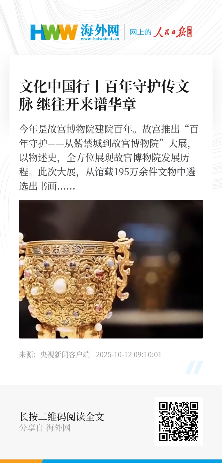 从“一脉文渊”的薪火相传,到“百年传承”的聚散离合,再到“万千气象”的守正创新,这场大展不仅让我们看到文物之美,更让我们读懂了守护之艰辛与传承之不易。走过风雨百年,今天的故宫博物院,正以更加开放自信的姿态,守护好、传承好、展示好中华优秀传统文化,向世界讲述古老而又充满活力的中国故事。
